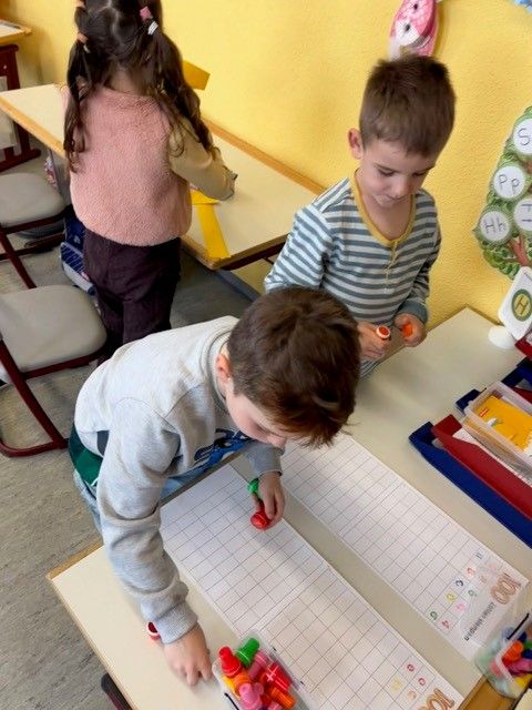 Auch die Zahl 100 spielte immer wieder eine Rolle: Gemeinsam schrieb und las die Klasse 100 Wörter, rechnete 100 Aufgaben, stempelte 100 Buchstaben und Zahlen und zeichnete 100 mal das Klassentier.