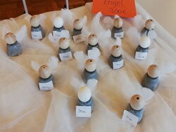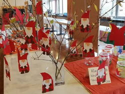 Die Lehrerinnen hatten sich ein Bastelangebot für die Kinder ausgedachte. Hier konnten Engel oder Weihnachtsmänner aus Papier und Kaffeefiltern hergestellt werden.