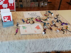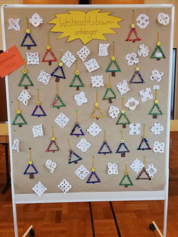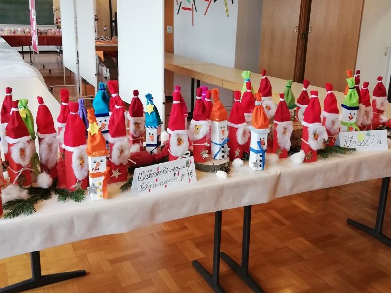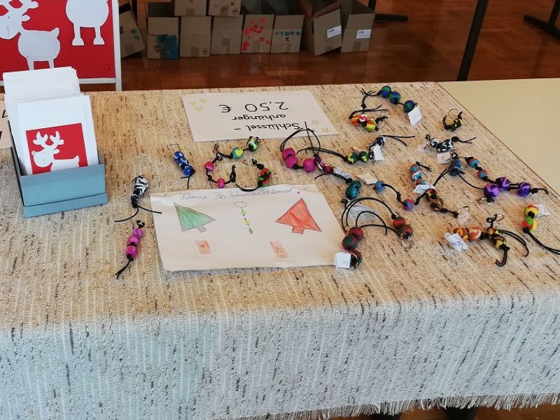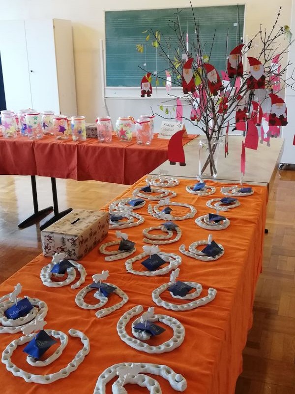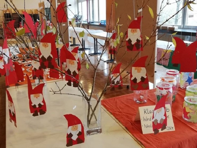 Die Lehrerinnen stellten vorab mit den Kindern verschiedene Bastelarbeiten her, die dann an diesem Tag von den Schülern mit Unterstützung von Eltern verkauft wurden. Auch die Eltern jeder Klasse bastelten mit den Kindern oder backten Plätzchen, die ebenfalls zum Verkauf standen.