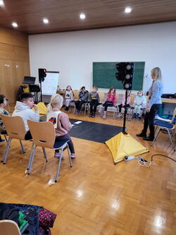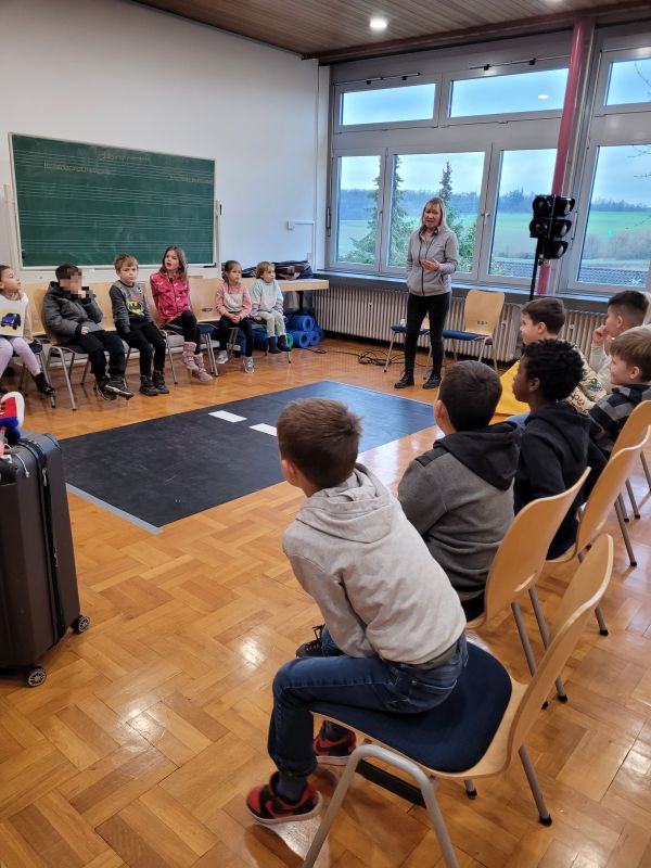 Am 09. Dezember besuchte der lustige Papagei Adacus die ersten Klassen der Henri-Arnaud- und der Gustav-Heinemann-Schule. Er half dabei, Regeln im Straßenverkehr spielerisch zu wiederholen und zu festigen. Mit richtigen Ampeln und einem aufgebauten Verkehrsparcours durften die Kinder verschiedene Rollen als Fußgänger oder als Autofahrer einnehmen. „Bei Rot bleib ich steh´n, bei Grün kann ich geh´n“- mit einem schmissigen Lied machte das Üben noch einmal so viel Spaß und der Schulweg wird so ein bisschen sicherer.