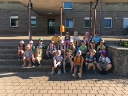 Wir – die Klasse 1b – wanderten letzte Woche zum Bauernhof der Familie Jaggy nach Erlenbach. Dort angekommen legten wir zuerst eine Vesper- und Spielpause ein. Dann konnten wir die Kuhställe anschauen. Wir konnten sehen, wie die Kühe leben, was sie fressen und wie sie gefüttert werden. Danach durften wir die Kälbchen besuchen und uns ansehen, wie die Kühe mit dem Melkautomat gemolken werden. Zum Schluss bekamen wir noch Wassermelonenstücke spendiert. Auf dem Rückweg machten wir noch einen Stopp beim Spielplatz.