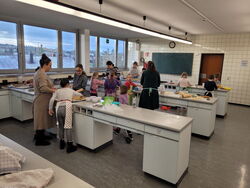 Adventliches Singen am Montagmorgen, liebevoll gestaltete Klassenzimmer, Adventskalender und -geschichten – in großen Schritten geht es auf Weihnachten zu. Auch das Backen gehört zu den schönen Traditionen in der Vorweihnachtszeit. So traf sich die Klasse 4c der Gustav-Heinemann-Schule mit der 2a der Henri-Arnaud-Grundschule zu einem gemeinsamen Vormittag. Nach dem Händewaschen ging es an die Arbeitsflächen, da wurde geknetet und ausgestochen. 5 Mütter unterstützten die Kinder und so waren im Handumdrehen viele Bleche voll mit leckeren Plätzchen. Ein Blech nach dem anderen wanderte in den Ofen und verbreitete weihnachtliche Gerüche im ganzen Schulhaus. Im Nachbarzimmer bastelte die zweite Gruppe Rentiere. Die Hände als Vorlage für das Geweih und die rote Nase – hübsche Fensterbilder zieren jetzt die Klassenzimmer. Einige ganz schnelle Kinder durften noch Kerzen gestalten. Beim gemeinsamen Abschluss wurde gesungen und natürlich die köstlichen Plätzchen probiert. Ein ganz herzliches Dankeschön den helfenden Händen beim Backen, Basteln und Teig Vorbereiten, ohne Unterstützung der Eltern wäre diese gelungene Aktion nicht möglich gewesen.