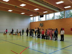 Während die Schulanfänger ihre ersten Unterrichtsstunden absolvierten, wurden die Eltern und Verwandten vom Elternbeirat und fleißigen Helfer im Foyer der Sporthalle bewirtet.