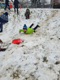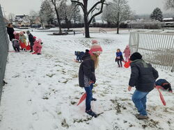 Endlich lag einmal an einem Schultag Schnee und die Klasse 1a konnte den Sportunterricht nach draußen verlegen. Kurzerhand wurden die „Poporutscher“ gepackt und der Bolzplatz zum Schlittenhang umgebaut. Auch Schneemänner entstanden und die Klasse hatte neben viel Bewegung auch eine ganze Menge Spaß.