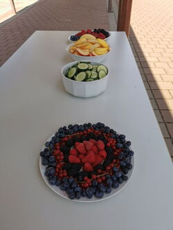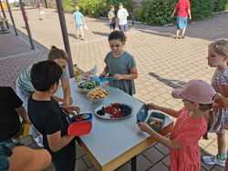 Am vorletzten Schultag fand ein gelungener Früchtetag statt. Die Kinder schienen es zu genießen, die regionalen Früchte zu essen und nebenbei mit ihren Mitschülern*innen zu plaudern. Vor allem die Beeren waren innerhalb kürzester Zeit verspeist. Ein großer Dank gilt den fleißigen Helferinnen, die uns tatkräftig unterstützt haben. Wir wollen uns an dieser Stelle auch bei allen anderen Helfer*innen bedanken, die uns in diesem Schuljahr bei den zahlreichen Aktionen unterstützt haben. Ohne euch, wäre das alles nicht möglich gewesen! (Einschulung, Herbstlicher Früchtetag, Lichterfest, Osternest-Suche, Zirkus, Sommerlicher Früchtetag). Vielen Dank! Wir wünschen allen Kindern, Eltern und Familien schöne Ferien und freuen uns schon jetzt auf die nächsten gemeinsamen Aktionen mit euch im neuen Schuljahr. Der Elternbeirat der Henri-Arnaud-Grundschule