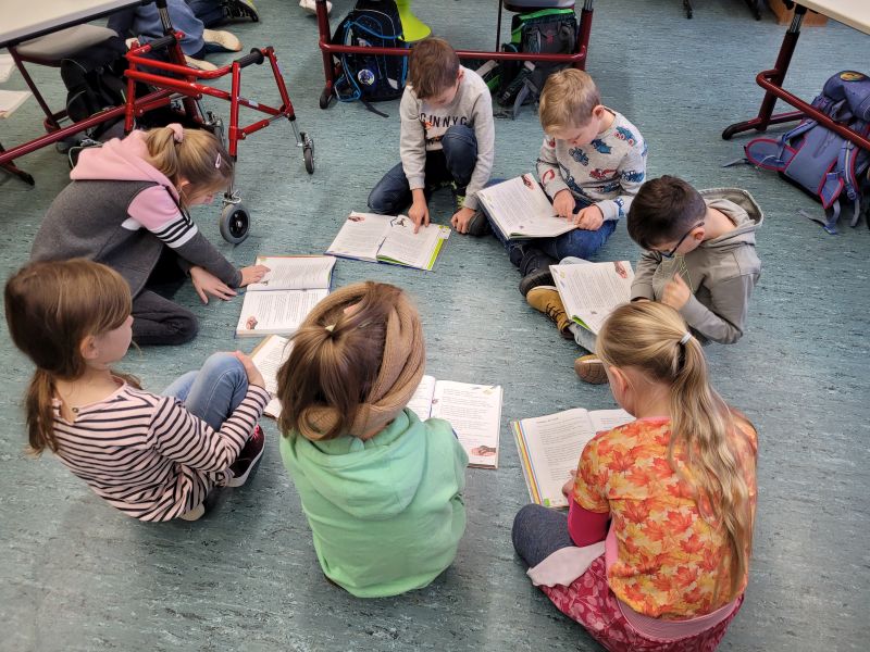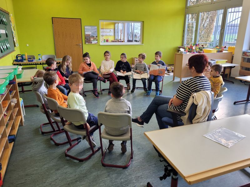 An der Henri-Arnaud-Grundschule wird das Lesen großgeschrieben. Die neueste Aktion der Klasse 2a war eine Vorlesestunde bei den Vorschulkindern. Bevor es losging, wurde im Unterricht einiges vorbereitet. Worauf muss man beim Vorlesen achten: deutlich sprechen, langsam lesen und den Kindergartenkindern auch die Bilder zeigen. Fragen wurden überlegt, damit die Vorschüler sich beteiligen konnten. Gut vorbereitet verteilten sich die Schulkinder in den beiden Räumen der Vorschulgruppe und im Klassenzimmer der 2a. Dort startete dann die Vorlesestunde – Balaban, der Hund von Sheila Och, die Geschichte eines Hundes, der aus dem Tierheim zu einer Familie kommt. Interessiert lauschten alle. Nach dem Lesen war die Freude groß, den Rest der Stunde mit den Vorschulkindern beim Spielen und Bauen zu verbringen. Einige Schulanfänger besichtigten auch das Klassenzimmer der 2a. Stolz gingen die Zweitklässler nach der Stunde zurück in ihre Klasse, das Lesen klappt schon richtig gut.