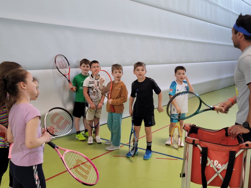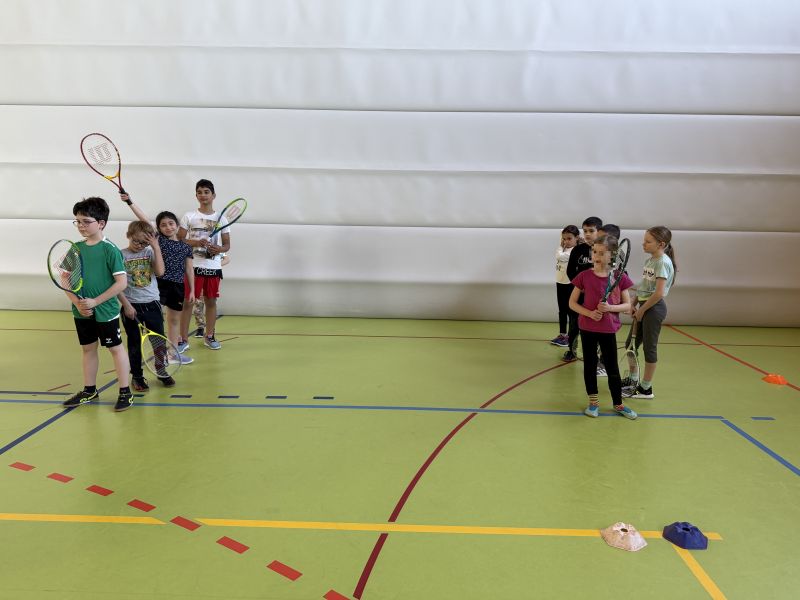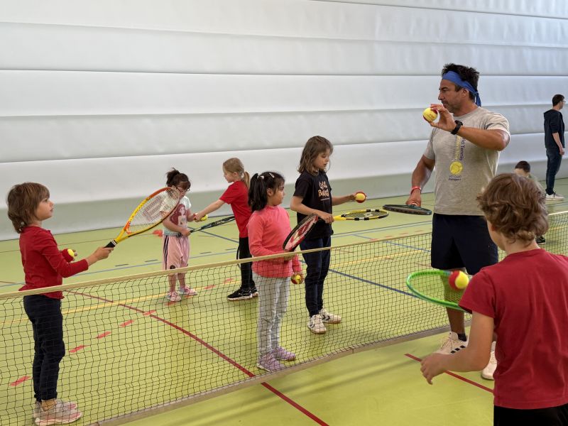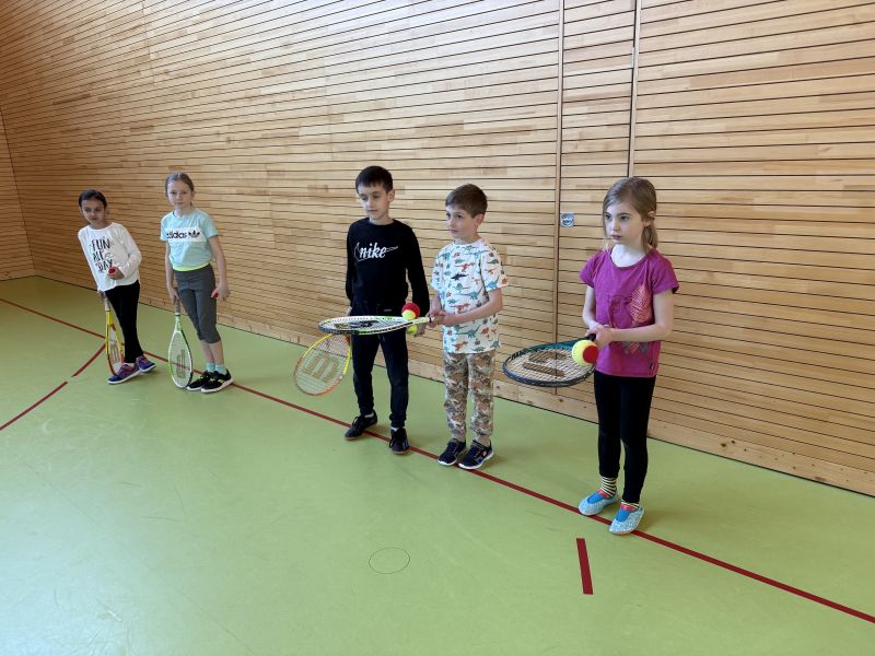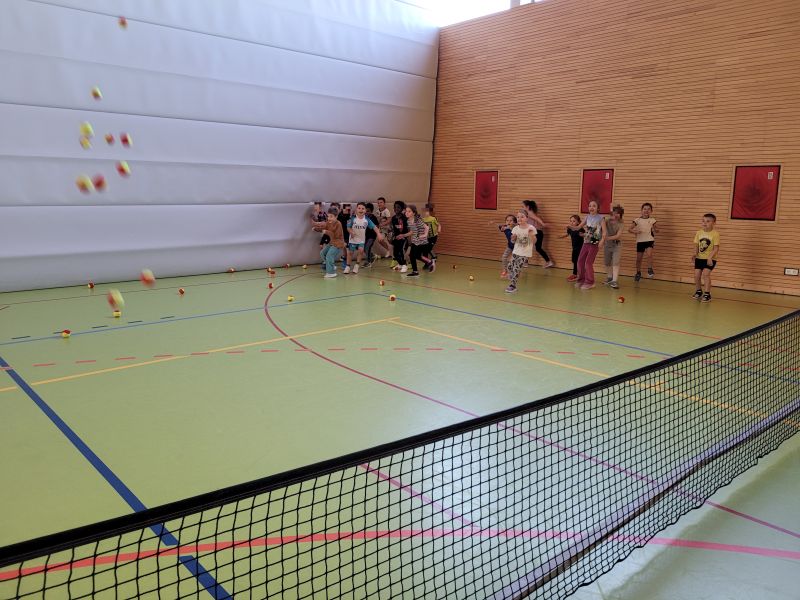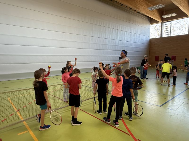 Einen aktiven Tag verbrachten die Kinder der Herni-Arnaud-Grundschule beim Schnupperangebot des TC Ötisheim. Unter der Regie von Udo Klein kamen 3 Tennistrainer mit Netzen, Tennisschlägern und Bällen in die Sporthalle und spielten nacheinander mit allen Klassen Tennis. Übungen zur Koordination wechselten sich ab mit ersten Schlägen übers Netz. Die Bälle waren weicher und dadurch langsamer. So gelangen den Kindern schnell die ersten Erfolgserlebnisse. Für Kinder, die das Tennisfieber gepackt hat, bietet der TC Ötisheim am Montag, den 12.05.2025 ab 14.00 Uhr eine weitere Schnupperstunde auf den Tennisplätzen des TC Ötisheim an. Auf alle Fälle hatten die Kinder bereits beim ersten Mal eine Menge Spaß.