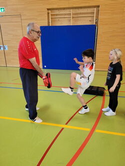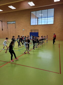 Taekwondo ist die Kunst der „waffenlosen Selbstverteidigung“ aus Korea. Zwei Wochen durften die Kinder der Henri-Arnaud- und der Gustav-Heinemannschule diese Kunst ausprobieren. Der Sportunterricht begann mit einer Erwärmung und verschiedenen Koordinationsübungen. Dabei wurden die Kinder von Herrn Escalano, Trainer beim Taekwondoverein Mühlacker und selbst früher Schüler an der Henri-Arnaud-Schule in Ötisheim, unterstützt. Gekonnt führte er in kleine Schlag- und Kickübungen auf Schlagpolster und Pratzen ein. Neben den Techniken für eine Selbstverteidigung erfuhren die Kinder aber auch, wie wichtig Respekt und Disziplin sind. Selbstvertrauen – einen Gegner auch einmal anschreien oder laut um Hilfe zu rufen, auch diese wichtigen Elemente beinhaltete die Übungsstunde. Alle nahmen die Inhalte begeistert auf und freuten sich über diesen ganz anderen Sportunterricht. Vielen Dank an Herrn Escalano für sein Engagement und die Zeit, die er sich genommen hat.