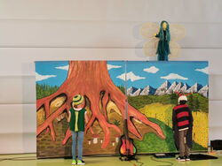 Die musikalische Erzählung lebt mit den Kindern. Lieder werden eingebaut, die die Schüler im Vorfeld mit ihren Lehrern geübt haben. Kaum schlägt Frank Ströber die ersten Takte auf seiner Gitarre an, legen die Kinder los. Der Akteur aus Heidelberg imitiert mit den Zuschauern den Flügelschlag der Insekten, z.B. durch das Reiben der Fingernägel aneinander.