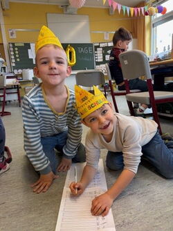 Die Klasse 1c hat diesen besonderen Tag gemeinsam gefeiert. Es gab Luftballons, Kronen und Kuchen – alles, was zu einer richtigen Feier dazugehört.