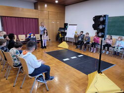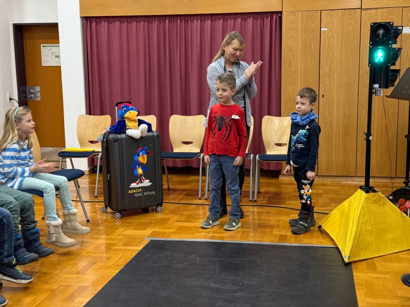 Am 09. Dezember besuchte der lustige Papagei Adacus die ersten Klassen der Henri-Arnaud- und der Gustav-Heinemann-Schule. Er half dabei, Regeln im Straßenverkehr spielerisch zu wiederholen und zu festigen. Mit richtigen Ampeln und einem aufgebauten Verkehrsparcours durften die Kinder verschiedene Rollen als Fußgänger oder als Autofahrer einnehmen. „Bei Rot bleib ich steh´n, bei Grün kann ich geh´n“- mit einem schmissigen Lied machte das Üben noch einmal so viel Spaß und der Schulweg wird so ein bisschen sicherer.