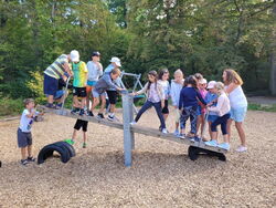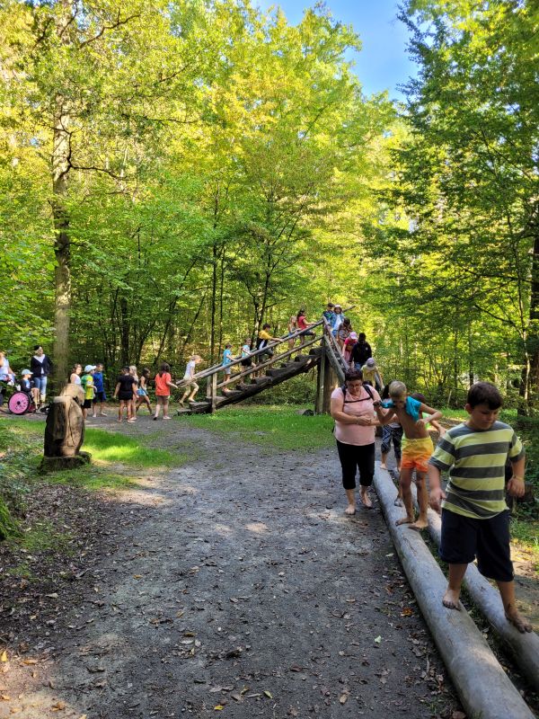 Was gibt es Schöneres, als das neue Schuljahr mit einem Ausflug zu beginnen? Bei der Hitze der letzten Tage war die Abkühlung im Wald des nahe gelegenen Barfußparks genau richtig. Für die Füße gab es besonders viel zu erleben. Verschiedene Untergründe: Holz, Kork, Sand, Steinchen und Herausforderungen durch Balancierstationen und matschige Lehmgruben. 26 Knochen, 30 Gelenke, 20 Muskeln und 100 Bänder stabilisieren unsere Füße, alle werden beim Barfußlaufen trainiert. Aber auch die Klassengemeinschaft wurde beim gemeinsamen Essen, Spielen und Reden nach den langen Sommerferien erneuert. Besonders schön war es, als unsere Projektpartner, die 4c der Gustav-Heinemann-Schule dazukamen und alte Freundschaften vertieft wurden. Ein gelungener Einstieg in das nächste Schuljahr der 2a.