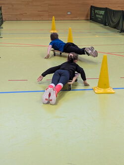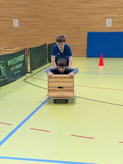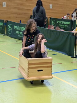diesen Wunsch konnten sich die Kinder der Henri-Arnaud- und der Gustav-Heinemannschule erfüllen. Als Höhepunkt vor den Winterferien, parallel zur Winterolympiade in Italien, wartete eine winterliche Bewegungslandschaft in der Sporthalle auf sie. Schnell wurde klar, es standen Fairness, Respekt und gegenseitiges Unterstützen im Mittelpunkt, nicht das Gewinnen. An 10 Stationen gab es das Erlebnis Winterolympiade pur. Beim Rodeln auf Rollbrettern zeigten die Schülerinnen und Schüler viel Geschick, ebenso beim Curling, Bobfahren und Schlittschuhlaufen mit den Teppichfliesen. Im Team wurden Schneebretter transportiert und Eskimohunde zogen einen Schlitten.