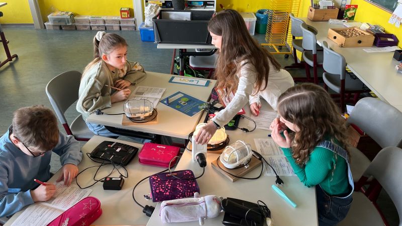An fünf Stationen konnten die Kinder selbstständig folgenden Fragen auf den Grund gehen: Aus welchen Gasen besteht die Atmosphäre? Was bedeutet der Treibhauseffekt und wie entsteht er? Wie kann Energie umgewandelt werden? Wie viel Strom verbrauchen unterschiedliche Geräte? Was sind die Folgen des Klimawandels?