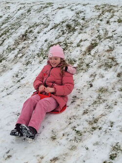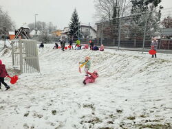 Endlich lag einmal an einem Schultag Schnee und die Klasse 1a konnte den Sportunterricht nach draußen verlegen. Kurzerhand wurden die „Poporutscher“ gepackt und der Bolzplatz zum Schlittenhang umgebaut. Auch Schneemänner entstanden und die Klasse hatte neben viel Bewegung auch eine ganze Menge Spaß.