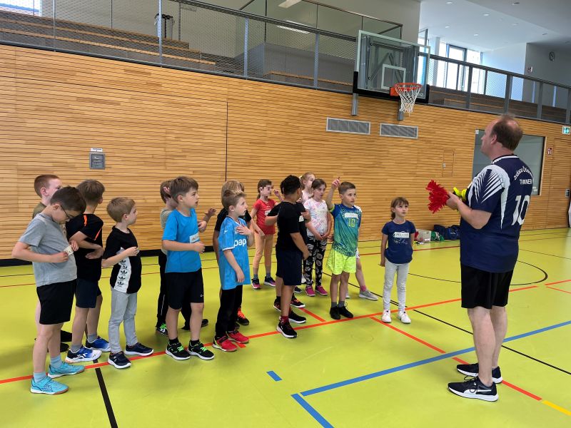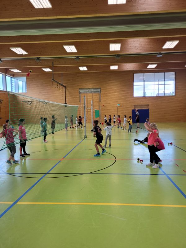 Immer wieder freuen sich die Schülerinnen und Schüler der Henri-Arnaud-Grundschule über auswärtige Fachleute, die kommen um ihnen auch eher fremde Sportarten näher zu bringen. Ganz fremd ist in Ötisheim Indiaca natürlich nicht, da der Verein bereits 20 große Turniere durchgeführt hat. Seit 30 Jahren besteht der Verein und macht auch mit Rekordversuchen von sich reden. Trotzdem war das Spiel mit dem kleinen flachen gelben Federball für einige Kinder etwas ganz Neues. Werner-Patrick Girrbach vom Indiacaverein Ötisheim kam in die Sporthalle und führte mit allen Klassen eine Schnupperstunde durch. Natürlich durfte das Indiacafangen zu Beginn nicht fehlen, aber es wurde auch fleißig am großen Netz das Zuspiel geübt. Einige Kinder konnten dabei Erfolgserlebnisse verzeichnen und schafften es sogar mehrmals die Indiaca hin und her zu spielen. Nicht nur jetzt in der Sommerzeit am Strand oder Schwimmbad, sondern auch als Turniersport kann Indiaca gespielt werden. Wer also Interesse bekommen hat, immer mittwochs von 17:00 – 18:30 Uhr findet das Training für die Grundschulkinder statt. Herrn Girrbach vielen Dank für sein Engagement, mit allen Klassen dieses „Schnuppern“ durchzuführen.