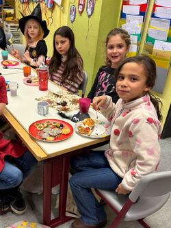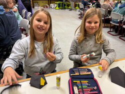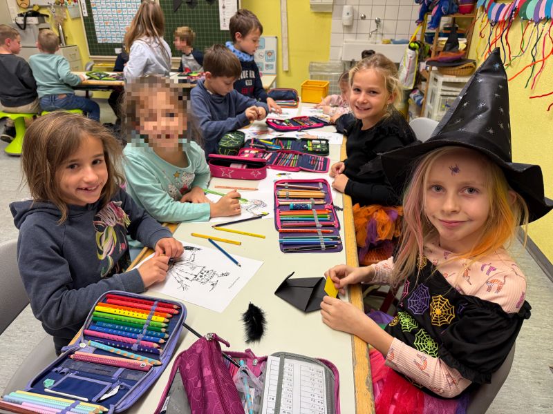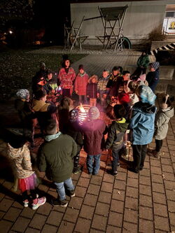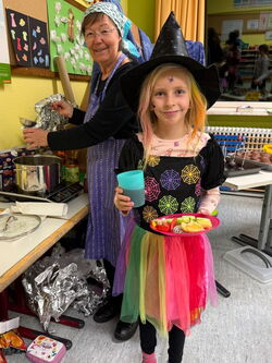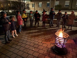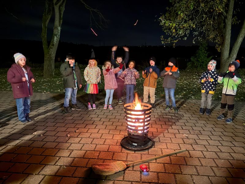 Nachdem die Kinder morgens beim Vorlesetag von Julian Terhorst bereits den Geschichten über die kleine Hexe und ihren Raben Abraxas gelauscht hatten, konnten sie nun selbst einige Kapitel in vereinfachter Sprache lesen und Rätsel dazu bearbeiten. Dafür machten es sich die Kinder auf Decken, Kissen und in selbstgebauten Höhlen richtig gemütlich. Zwischendurch konnten sie zur Abwechslung noch den Raben Abraxas basteln oder ein Hexenbild malen. Danach hatten sich alle eine Pause verdient. Am Buffet mit zahlreichen leckeren Köstlichkeiten von den Eltern konnte sich jeder bedienen und genüsslich schlemmen. Dazu schmeckte auch der frisch zubereitete Zauberpunsch. Nach dieser Stärkung und einer weiteren Geschichte von der kleinen Hexe ging der Leseabend seinem Ende entgegen. Abschluss waren Hexentänze um den Feuerkorb, wie es auch die kleine Hexe in der Walpurgisnacht gemacht hat. Der Leseabend war eine gelungene Aktion, die Spaß gemacht und die Freude an Geschichten und am Lesen geweckt hat.