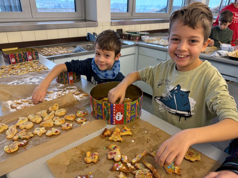 Noch vor dem ersten Advent haben die Klassen 2b und 2g am 27.11.2025 mit Unterstützung einiger Mütter begeistert viele leckere Plätzchen gebacken und schöne Sterne aus Transparentpapier gebastelt. In der Adventszeit dürfen die Kinder nun jeden Tag von ihren selbst gebackenen Plätzchen naschen. Die bunten Sterne schmücken die Fenster weihnachtlich. Herzlichen Dank an alle Eltern, die Teig und Zutaten gespendet haben sowie an die fleißigen Mütter, die in der Schule mitgeholfen haben.