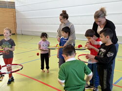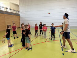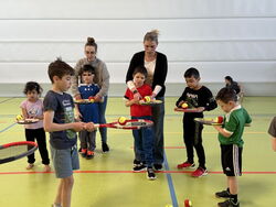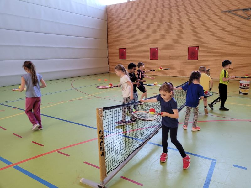 Einen aktiven Tag verbrachten die Kinder der Herni-Arnaud-Grundschule beim Schnupperangebot des TC Ötisheim. Unter der Regie von Udo Klein kamen 3 Tennistrainer mit Netzen, Tennisschlägern und Bällen in die Sporthalle und spielten nacheinander mit allen Klassen Tennis. Übungen zur Koordination wechselten sich ab mit ersten Schlägen übers Netz. Die Bälle waren weicher und dadurch langsamer. So gelangen den Kindern schnell die ersten Erfolgserlebnisse. Für Kinder, die das Tennisfieber gepackt hat, bietet der TC Ötisheim am Montag, den 12.05.2025 ab 14.00 Uhr eine weitere Schnupperstunde auf den Tennisplätzen des TC Ötisheim an. Auf alle Fälle hatten die Kinder bereits beim ersten Mal eine Menge Spaß.