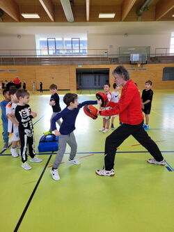 Taekwondo ist die Kunst der „waffenlosen Selbstverteidigung“ aus Korea. Zwei Wochen durften die Kinder der Henri-Arnaud- und der Gustav-Heinemannschule diese Kunst ausprobieren. Der Sportunterricht begann mit einer Erwärmung und verschiedenen Koordinationsübungen. Dabei wurden die Kinder von Herrn Escalano, Trainer beim Taekwondoverein Mühlacker und selbst früher Schüler an der Henri-Arnaud-Schule in Ötisheim, unterstützt. Gekonnt führte er in kleine Schlag- und Kickübungen auf Schlagpolster und Pratzen ein. Neben den Techniken für eine Selbstverteidigung erfuhren die Kinder aber auch, wie wichtig Respekt und Disziplin sind. Selbstvertrauen – einen Gegner auch einmal anschreien oder laut um Hilfe zu rufen, auch diese wichtigen Elemente beinhaltete die Übungsstunde. Alle nahmen die Inhalte begeistert auf und freuten sich über diesen ganz anderen Sportunterricht. Vielen Dank an Herrn Escalano für sein Engagement und die Zeit, die er sich genommen hat.
