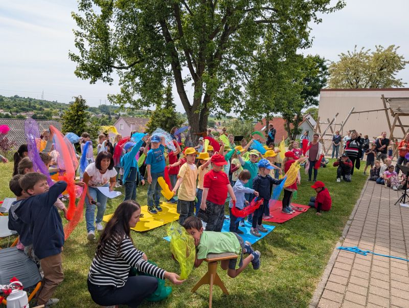 Im Programm ging es weiter mit dem Musiktheaterstück „Vier Farbenland“ das die 1b zusammen mit der 1c, der 3c und der kooperativen Musik-AG einstudiert hat. Zum Abschluss führte die Musik-AG noch das Lied „Auf uns“ vor. Herzlichen Dank an alle Lehrkräfte, Betreuungskräfte, Schülerinnen und Schüler für die wunderbare Gestaltung des Programms.