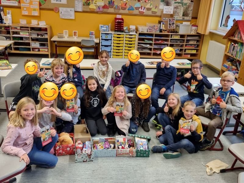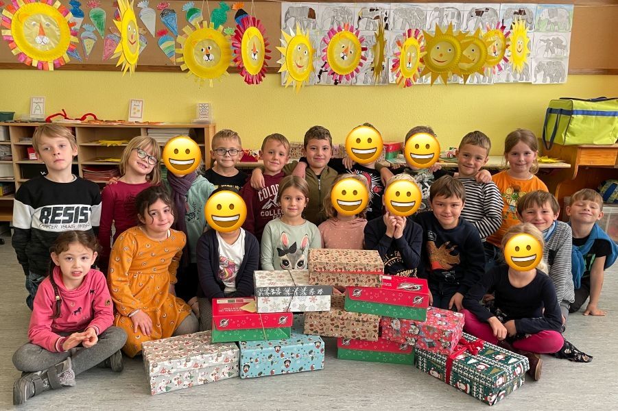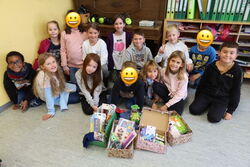 Auch dieses Jahr beteiligten sich Klassen (1a, 1b, 2b, 3a) der Henri-Arnaud-Grundschule an der Aktion „Weihnachten im Schuhkarton". Die Kinder haben viele schöne und nützliche Geschenke sowie weihnachtlich gestaltete Schachteln mitgebracht. Im Religionsunterricht haben wir gemeinsam alle Spenden auf die Kartons verteilt und anschließend an die Ötisheimer Sammelstelle gebracht. Mit unseren Geschenken im Schuhkarton wollen wir an Weihnachten armen Kindern in Not eine Freude bereiten. Herzlichen Dank an alle Eltern für die Unterstützung dieser Aktion und die vielen Spenden!